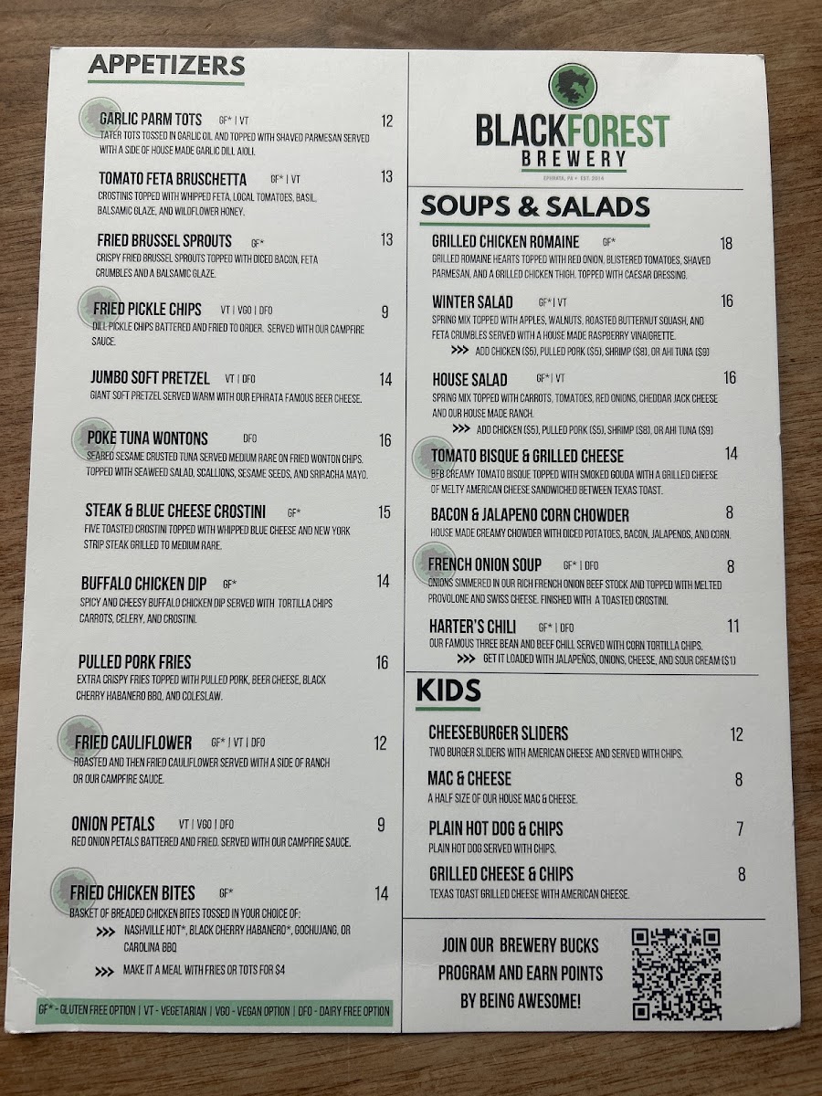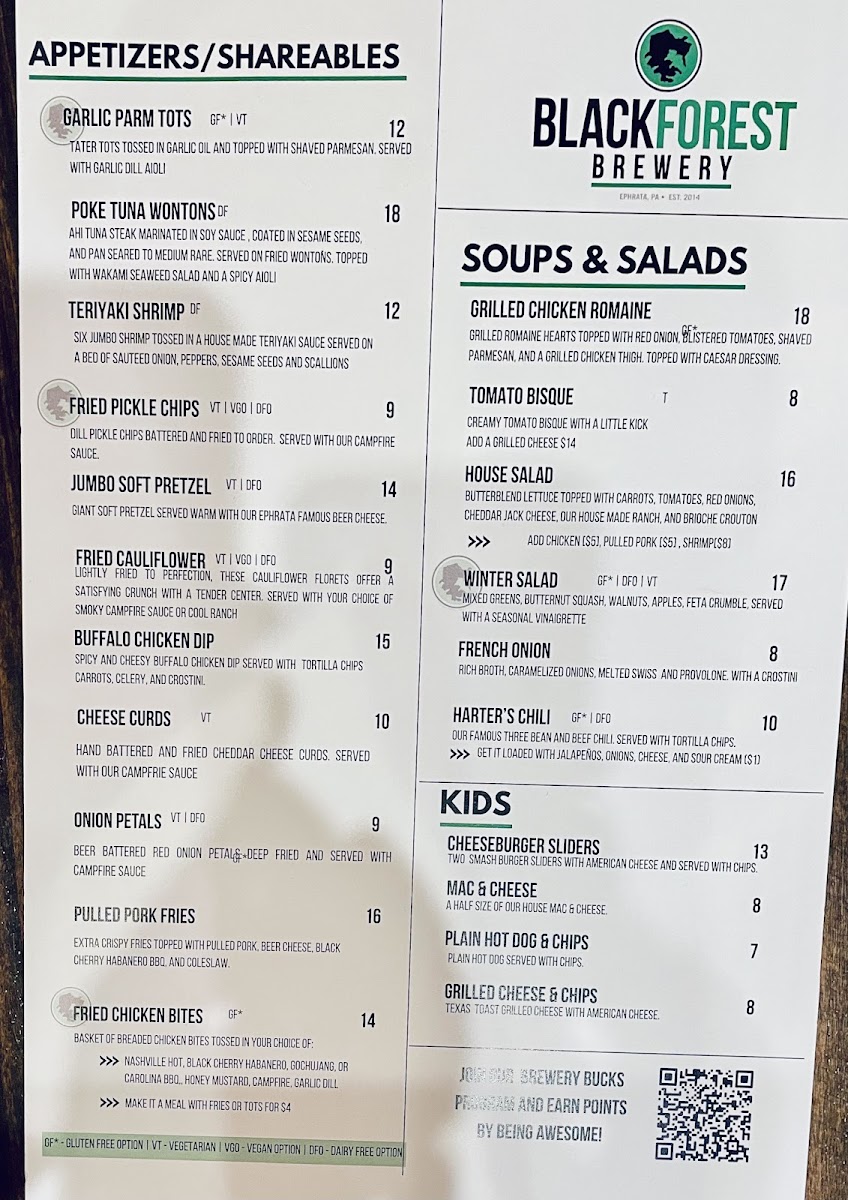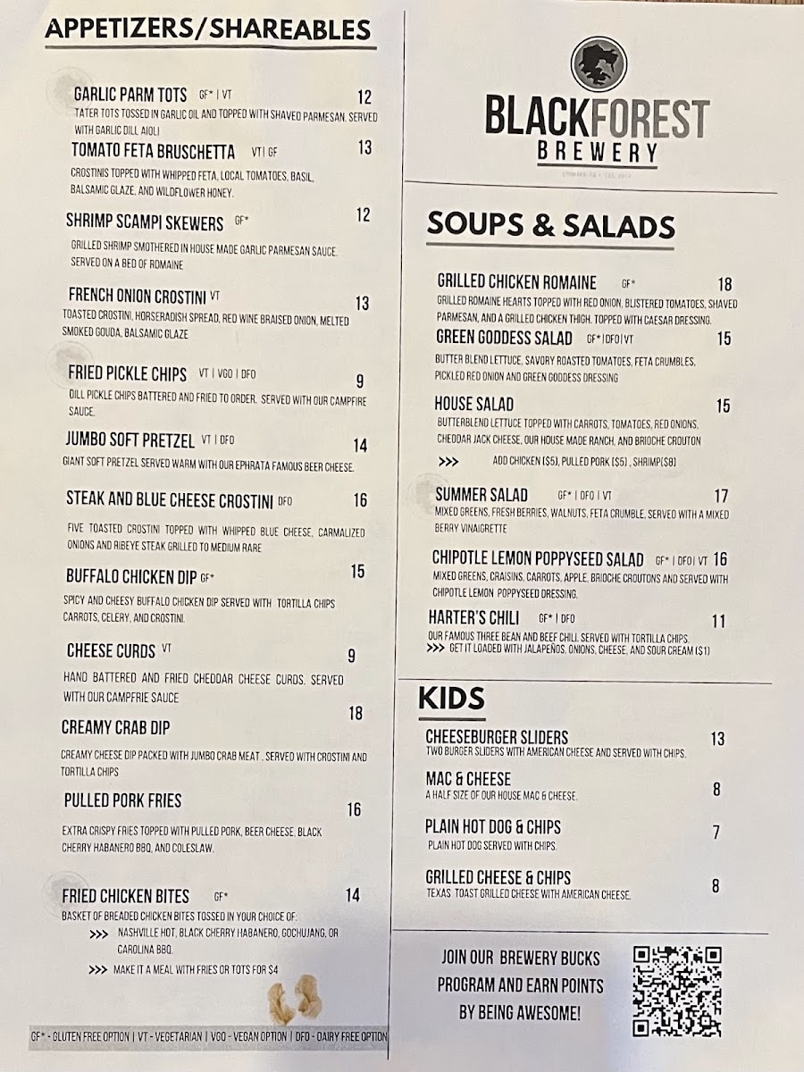 Black Forest Brewery Menu